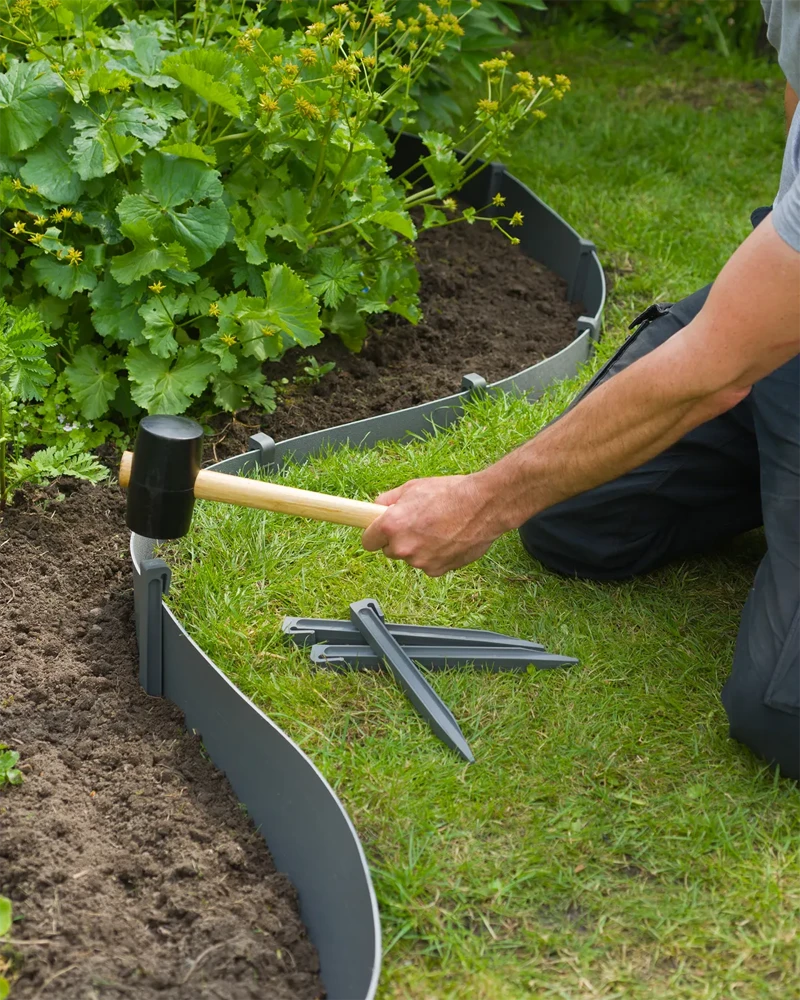 Grijze grondpennen zijn gemaakt van gerecycleerd polyethyleen. Ze zijn 26,7 cm hoog. De ankers worden gebruikt om tuinborders vast te zetten en de randen van jouw gazon te vrijwaren.